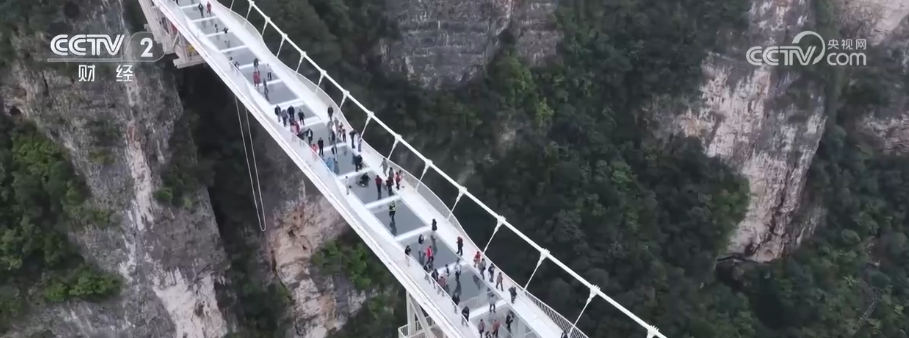 这段时间,张家界大峡谷的峰林石柱逐渐染上秋色,景区日均接待游客近万人,入境游客占比超过45.25%。游客们在张家界大峡谷云天渡玻璃桥上或悠然散步,或驻足拍照,将深邃峡谷与嶙峋奇峰尽收眼底,体验云中漫步的惊险。云天渡玻璃桥是一座斜拉式玻璃桥,横跨于高山峡谷之间,长430米、宽6米,桥面距谷底相对高度约300米。